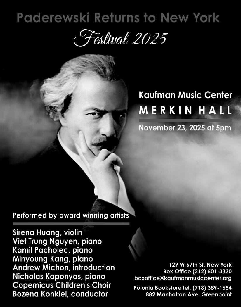 Bilety do nabycia na stronie Kaufman Music Center: https://www.kaufmanmusiccenter.org/mch/ event/paderewski-returns-to-ny-festival-2025/ Nie przegap tego wyj¹tkowego wydarzenia.