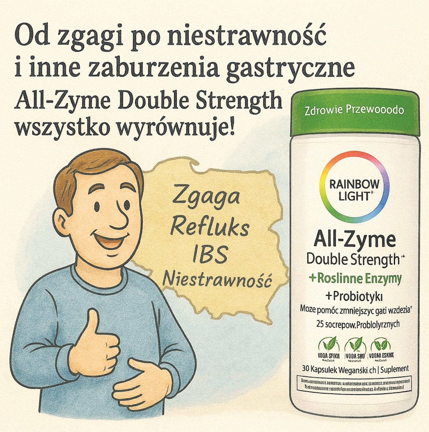 Nie oszukujmy siê – ¿yjemy szybko, jemy byle jak, stresujemy siê niemal wszystkim, a nasze ¿o³¹dki cierpi¹ w ciszy. Dlatego ALL-Zyme to nie luksus, ale logiczny wybór. Dla zdrowia, dla komfortu, dla… reszty domowników (którzy zas³uguj¹ na ciche noce).
