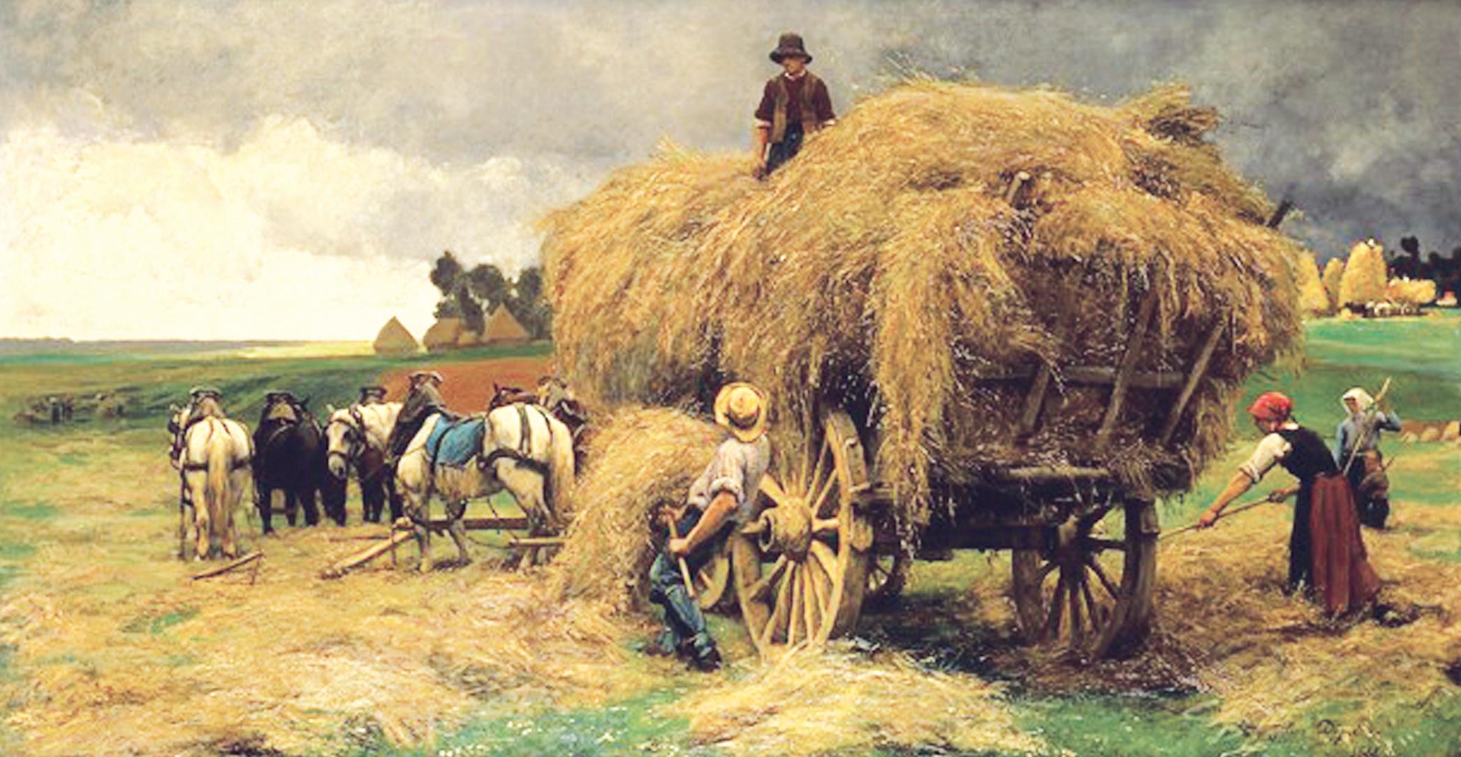 Dla odmiany przyjrzyjmy siê innemu wozowi, tym razem z sianem, namalowanemu siedemdziesi¹t kilka lat póŸniej przez francuskiego malarza wsi, a zw³aszcza ¿niwiarzy, Juliena Dupre. Tematyka, któr¹ eksploatowa³ niemi³osiernie, znajdowa³a chêtnych nabywców, sam artysta dba³ o swoj¹ reputacjê – nie mog³o byæ paryskiego dorocznego salonu bez jego dzie³a. Artysta ubiega³ siê o wszelkie mo¿liwie nagrody i zaszczyty (z powodzeniem).