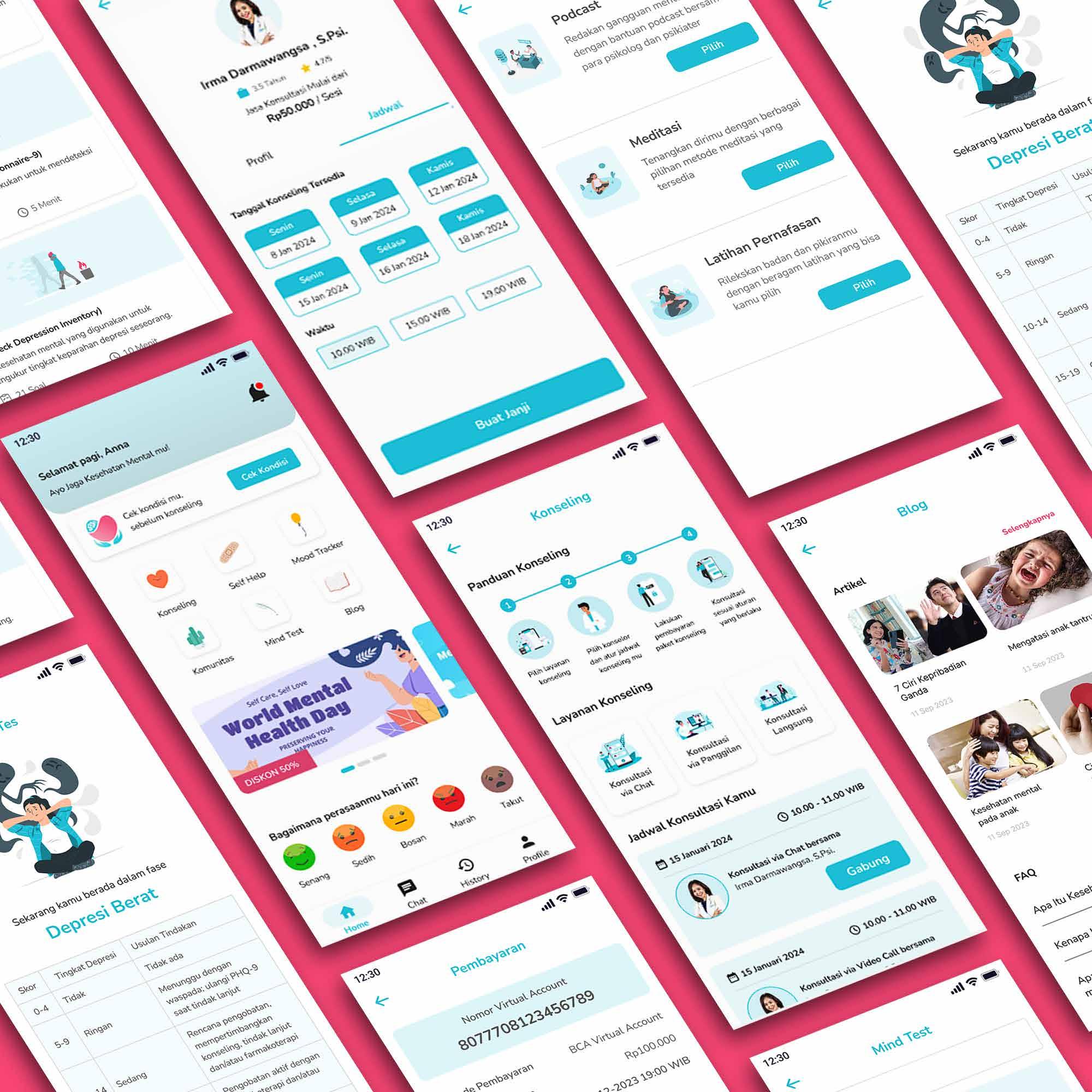 Here are the results of the UI Design I did it starting from the login page directed towards selecting a counselor, look at the counselor's schedule until the checkout process is made follow brand guidelines is on the previous page