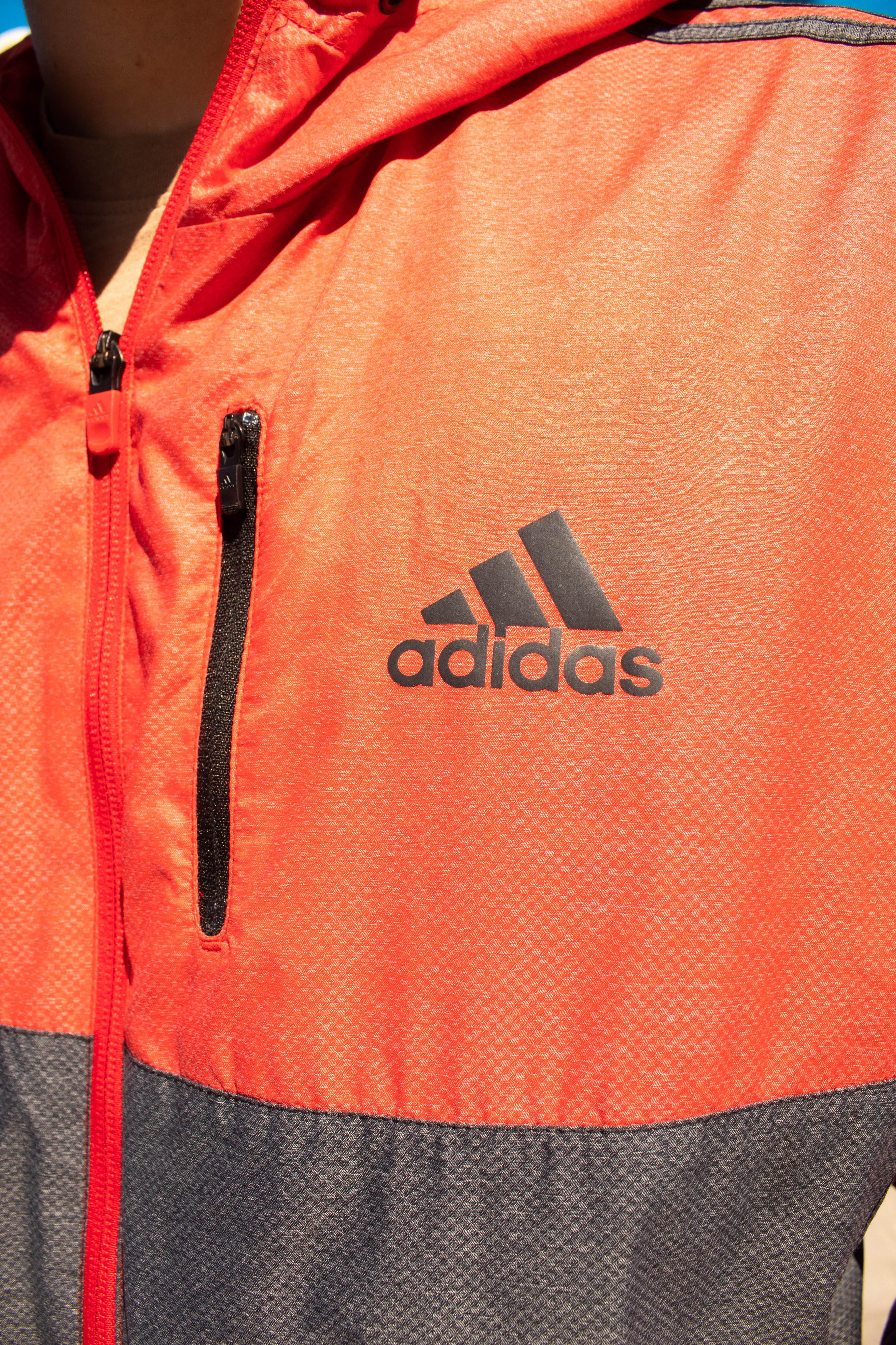 Esta cortavientos ligera de adidas maneja ambos gracias a su tejido Primegreen resistente al viento que forma parte del compromiso de adidas para acabar con los residuos plásticos.