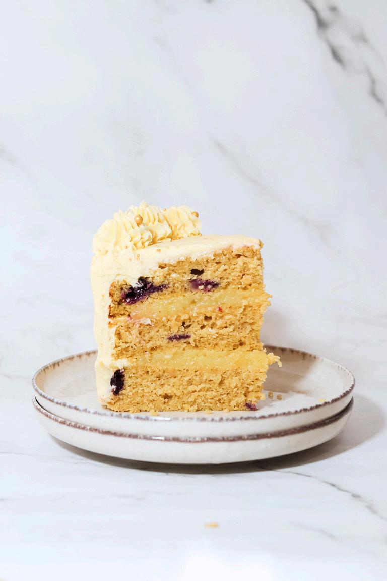 Our freshly baked Lemon and Blueberry Cake is made with perfectly layered zesty fluffy sponge, blueberries and in-house lemon curd. Each forkful is a symphony where the tartness of the lemon curd dances in harmony with the sweetness of the blueberries, creating a melody that lingers long after the last bite.