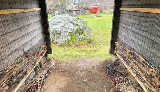 Dianas halvfärdiga utekonstverk vid Torstens bod på området där byborna gärna får vara med och väva med naturmaterial. Konstverket påbörjades vid evenemanget Höstbestyr på höstlovet av Diana och besökarna. Museiområdesbesökare är välkomna att fortsätta verket och väva med naturmaterial. Det kan ju vara trevligt att väva in några strån och pinnar (med barnen) och vid nästa besök genom området se hur konstverket växt.