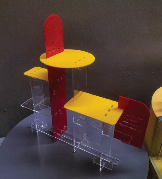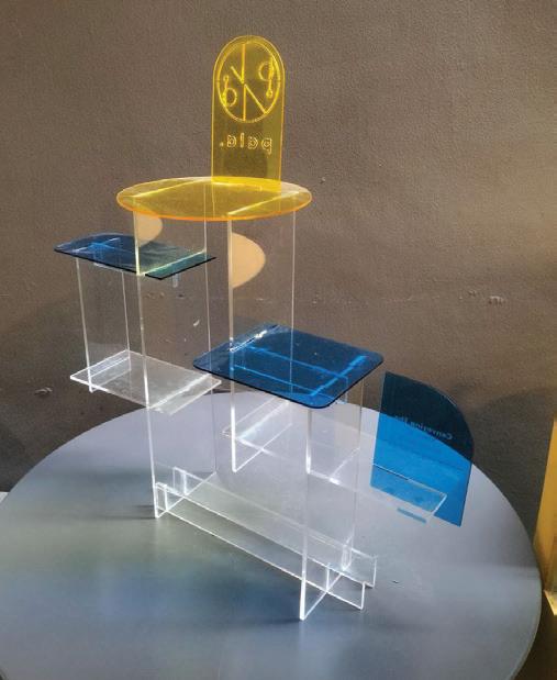 Develop an acrylic exhibition stand to showcase 6 product series. The design must be massive, portable for town-to-town transportation, and modular, without the need for any adhesive or bending.