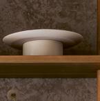 Spiras hylla finns i varierande höjd från golv till tak alternativt vägghängd i valfri storlek. Panelen är, liksom köksöns skiva, fransk kalksten Silver Moon.