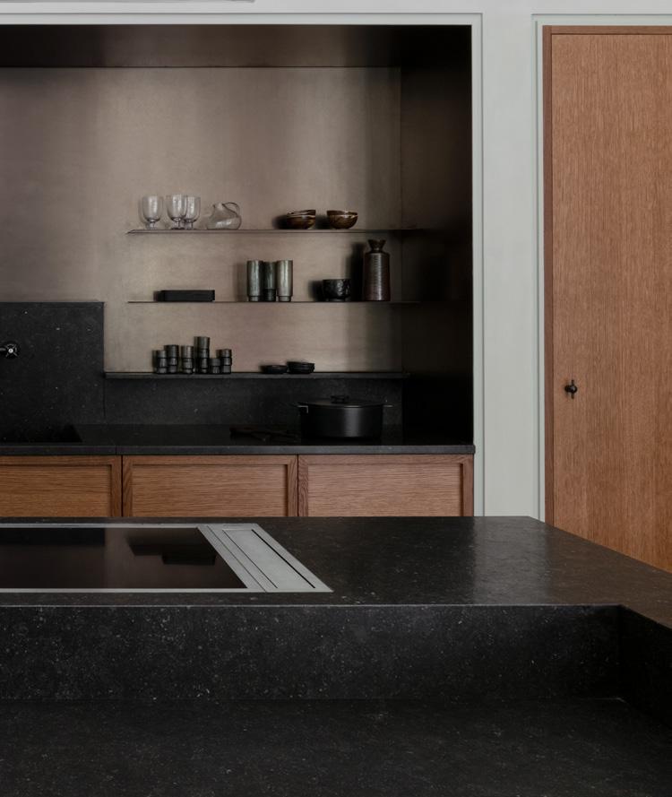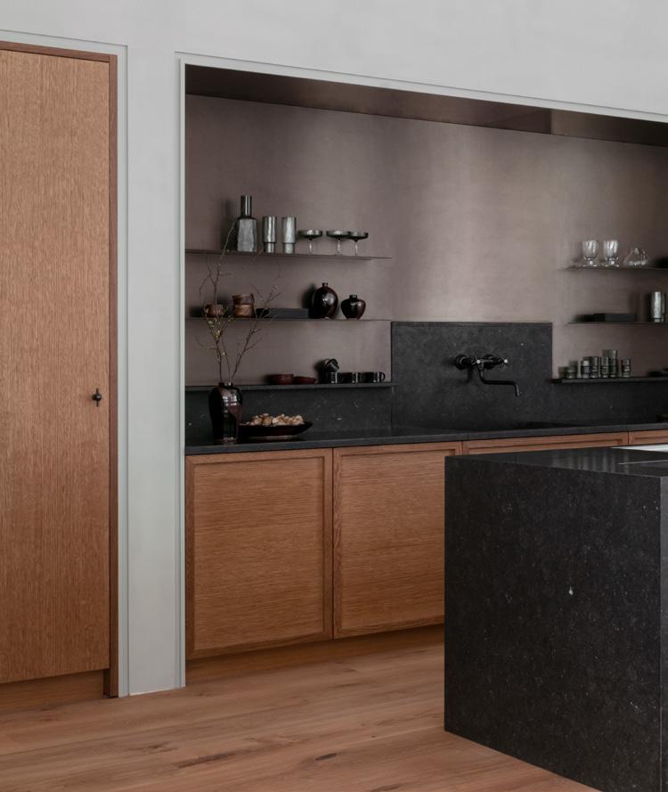 Liljencrantz for Kvänum is a concept originally created and elaborated by acknowledged Swedish designer Louise Liljencrantz. A rustic kitchen of exquisite materials, the true story of stone and wood told with a slender frame of the door, squares and cubes, sharp edges, straight lines, and right angles. Her credo is simplicity and beauty. She has described the style as Old Victorian manor goes Japan.