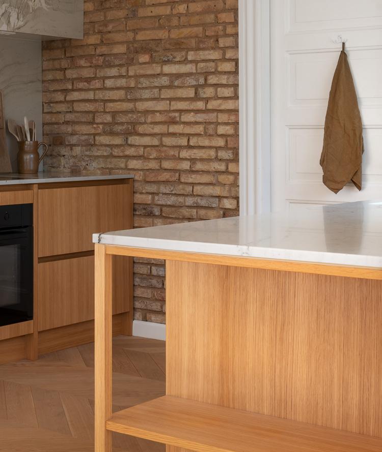 Där står det nu äntligen på egna ben, vårt nya gemensamma kök, lika vackert som enkelt.