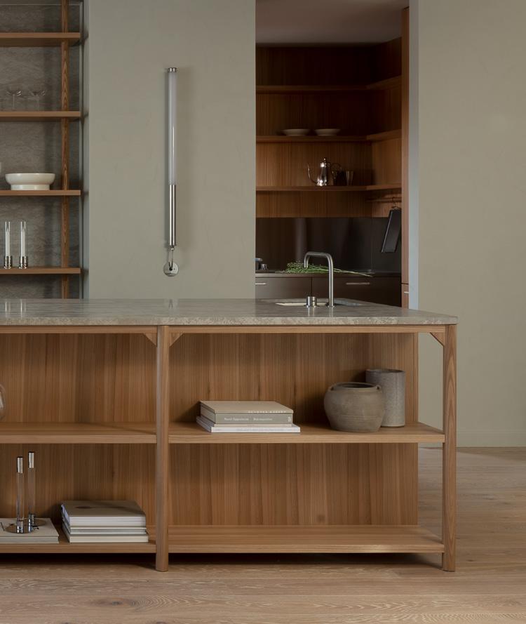 Köksön finns i ett par varianter, den ena med karaktären av monolit och den andra mer av en elegant möbel med luft, ljus och transparens som bärande element.