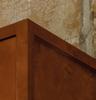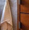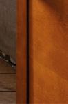 A stool, less for sitting on than looking at, an up-end drawer serving as a bedside table, a remarkably organic Corten steel pew, a round table reminding of a cable drum, jars, vases, and vessels, a rectangular dining table with right angle chairs, a bathroom with a recycled washbasin, simple but intricate, and a classic enamel tub on rusty iron feet, all executed with finesse and subtle humor. So, what is this?