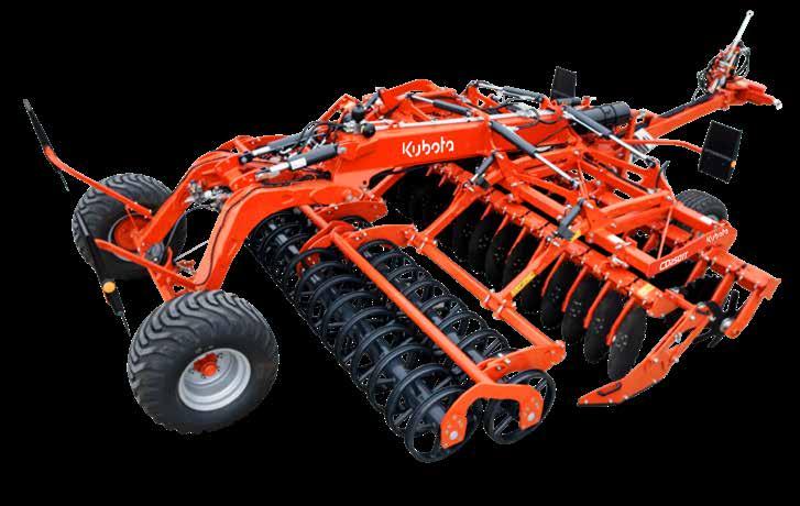 The Kubota short disc harrows operate at high forward speeds of up to 20km/h and cultivate at a working depth from 2 to 15cm whilst maintaining constant cutting from shallow and deep stubble cultivation, seedbed preparation after ploughing as well as for incorporation of catch crops due to the large conical discs and the high interrow distance of 900mm. When the time is right, you need a machine that has the right capacity to finish the job perfectly.