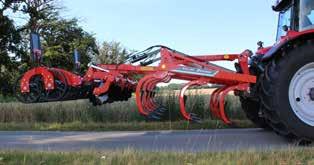 Kontrola głębokości Kontrola głębokości w kultywatorze Enduro lub Enduro Pro odbywa się za pomocą wału zagęszczającego. Dzięki zawieszeniu wału na równoległoboku w Enduro Pro zmiana głębokości roboczej może odbywać się podczas pracy z kabiny ciągnika. Sekcja równająca również jest zawieszona na równoległoboku, dzięki czemu przy zmianie głębokości jej pozycja względem wału nie zmienia się. Jeśli podczas pracy w innych warunkach glebowych zajdzie konieczność zmiany pozycji sekcji równającej można to zrobić za pomocą korb.