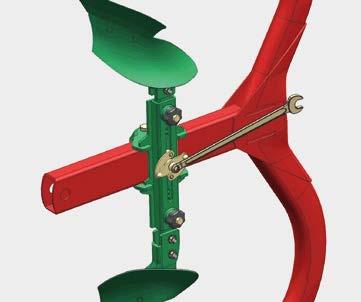 100% higher productivity in adjusting skimmers. Smart and easy, Kverneland 2501 i-Plough® offers the possibility to adjust the skimmers depth simultaneaously. Use the spanner and just screw or unscrew the central bolt