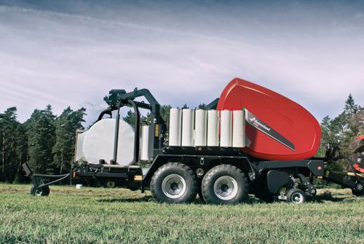 Flexkammarpress med integrerad inplastare, FlexiWrap. Balens diameter från 0,60m upp till 1,65 och 2,00 m. FlexiWrap kombinerar hög baldensitet med snabb och säker balöverföring samt snabb dubbel satellitinplastning.