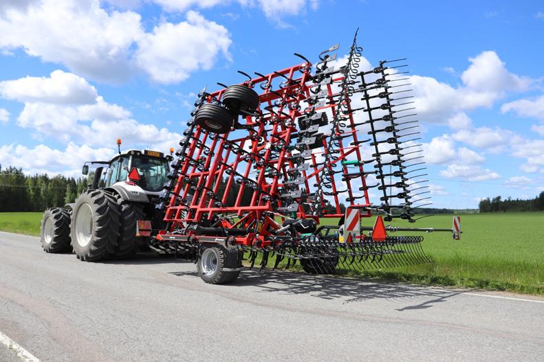 • Alla TIGER harvar har stora hjul i dim. 250/65x14,5 placerat i fyra bärlinjer Kraftig 10x80 mm främre lamellplanka, möjligt att kompletteras med stabilise ringsstag i special fjäderstål Ställbar efterharv ingår i standardutförande