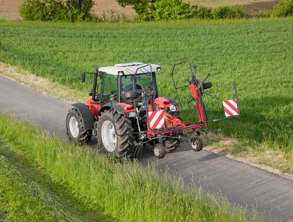In road transport, tedder weight rests on the running gear, rather than on the tractor’s rear axle. The optimised driveline provides low input requirement, so you can easily use a small tractor and still work at wide working widths - the ideal solution that saves fuel and running costs.