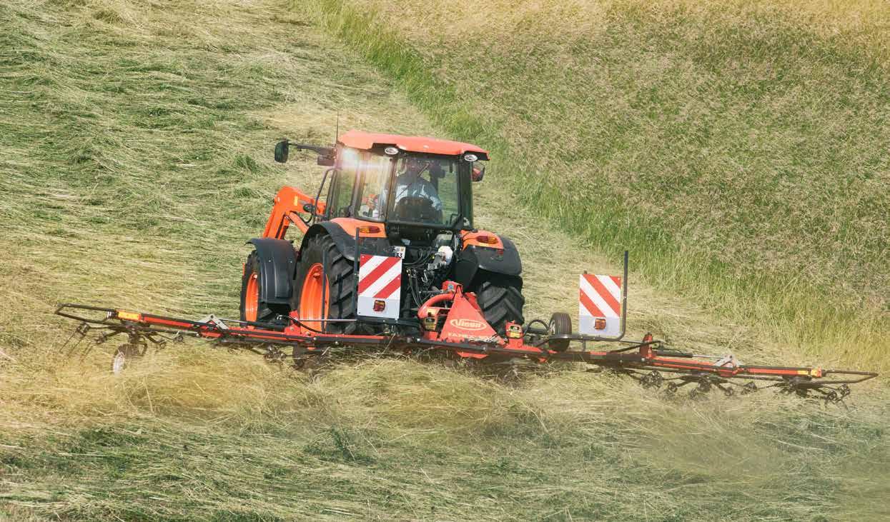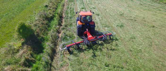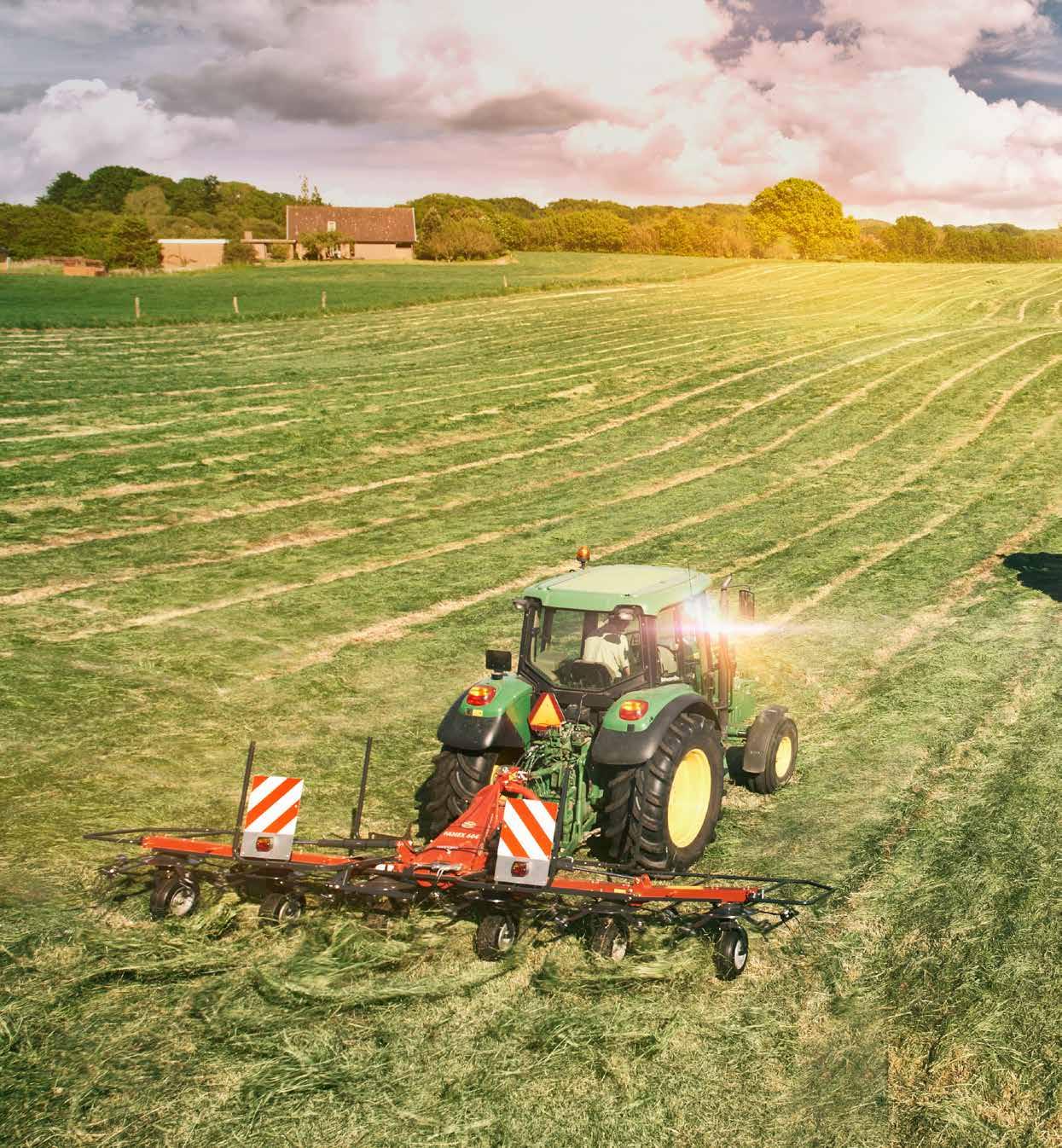 The very small rotors are especially designed for optimized performance while producing dry hay, but will fit any kind of crop. The compact rotors, in combination with a big overlap, ensure complete pick-up of the grass and equal distribution over the entire working width.