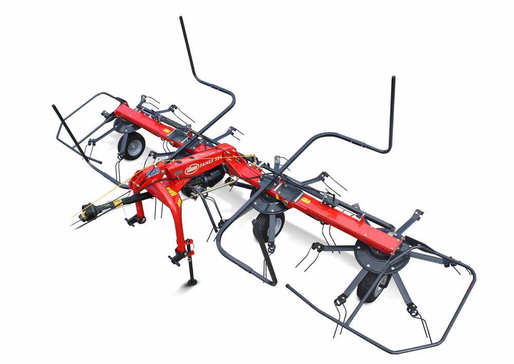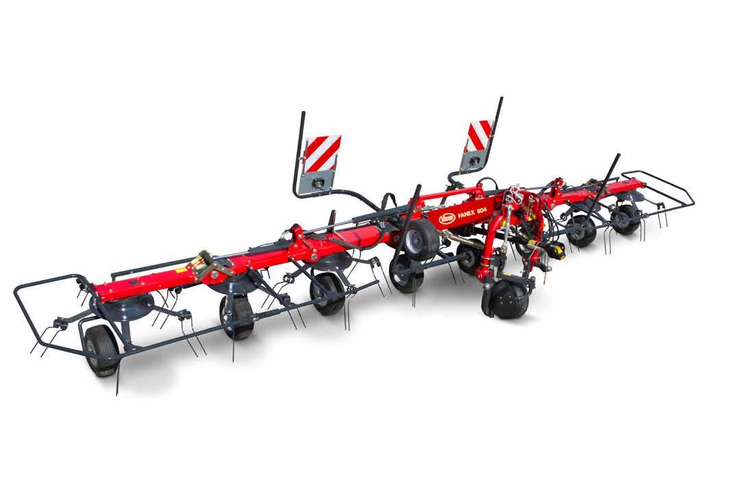 Fanex 604 and Fanex 804 come with a strong package of Vicon features, such as 2 oscillation dampers, strong V-shaped central unit and central adjustment for border tedding.