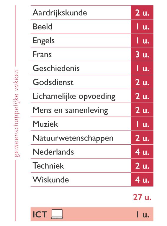 • 2 uur in het lessenrooster
