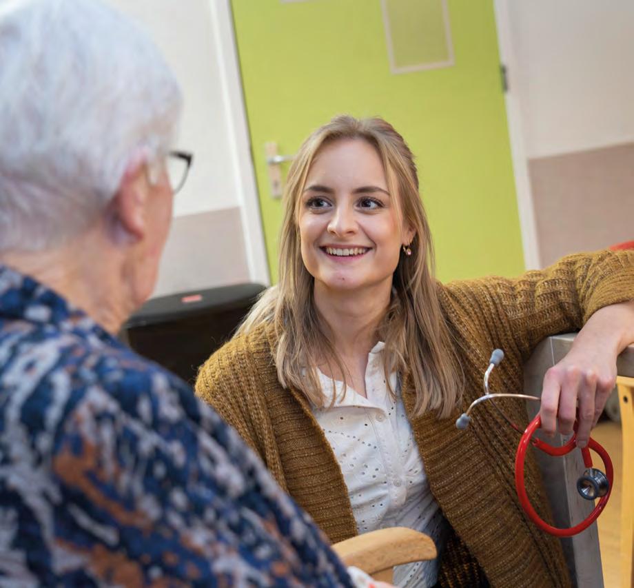 doktersassistent voor wat verdere vragen. ‘Dat wisselende contact met verschillende disciplines maakt mijn werk zo leuk. Ik leer van mijn zorgcollega’s, maar ook van de bewoners en hun naasten. Met elkaar kijken we wat het beste is voor de bewoner. En de vrijheid en afwisseling die ik in mijn werk ervaar, je weet nooit hoe een dag er van tevoren uitziet.’