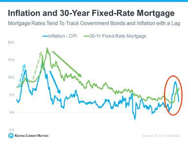 The circled portion of the graph points out the most recent spike in inflation, with mortgage rates following closely behind. As inflation has moderated a bit this year, mortgage rates haven’t yet made a similar move. That means, if history is any guide, the market is waiting for mortgage rates to follow inflation and head back down. It’s impossible to accurately predict where mortgage rates will go for sure, but moderating inflation means mortgage rates going down in the near future would fit a well-established trend.