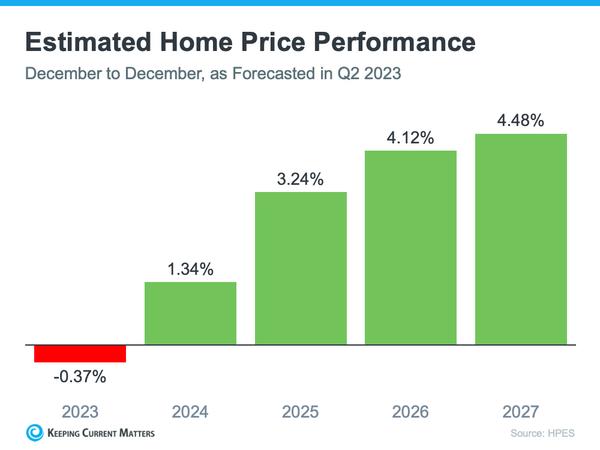 According to the latest release, the experts surveyed are projecting slight depreciation this year (see the red in the graph below). But here’s the context you need most. The worst home price declines are already behind us, and prices are actually appreciating again in many markets. Not to mention, the small 0.37% depreciation HPES is showing for 2023 is far from the crash some people originally said would happen.