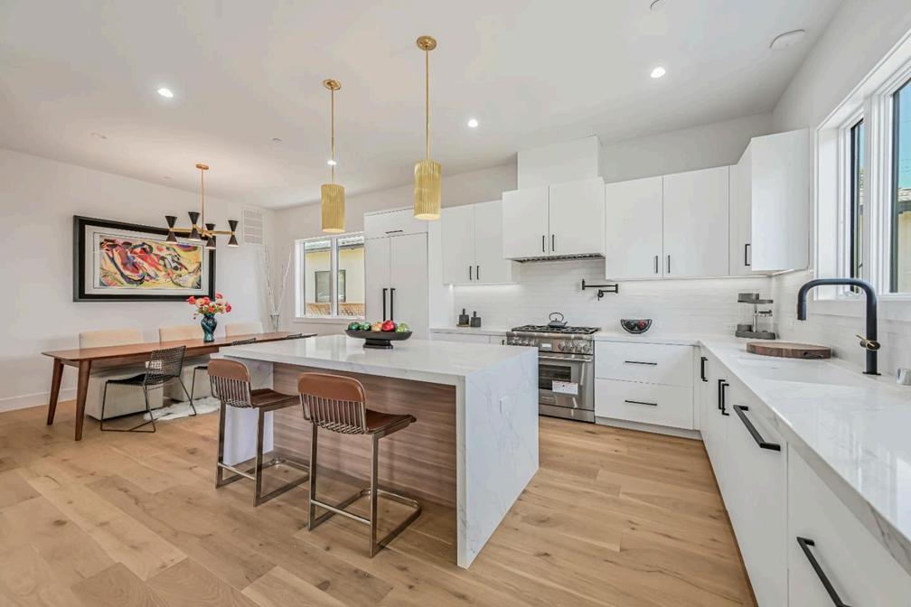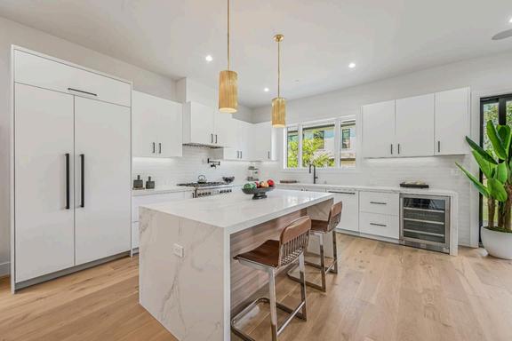 Each bedroom features its own attached bathroom, offering comfort and privacy for every member of the household. The lower level primary suite, with its own private entrance, can serve as a guest suite, office or a potential ADU. With light oak hardwood floors throughout, designer finishes, and a gourmet kitchen, this home reflects quality craftsmanship and timeless style. The spacious open