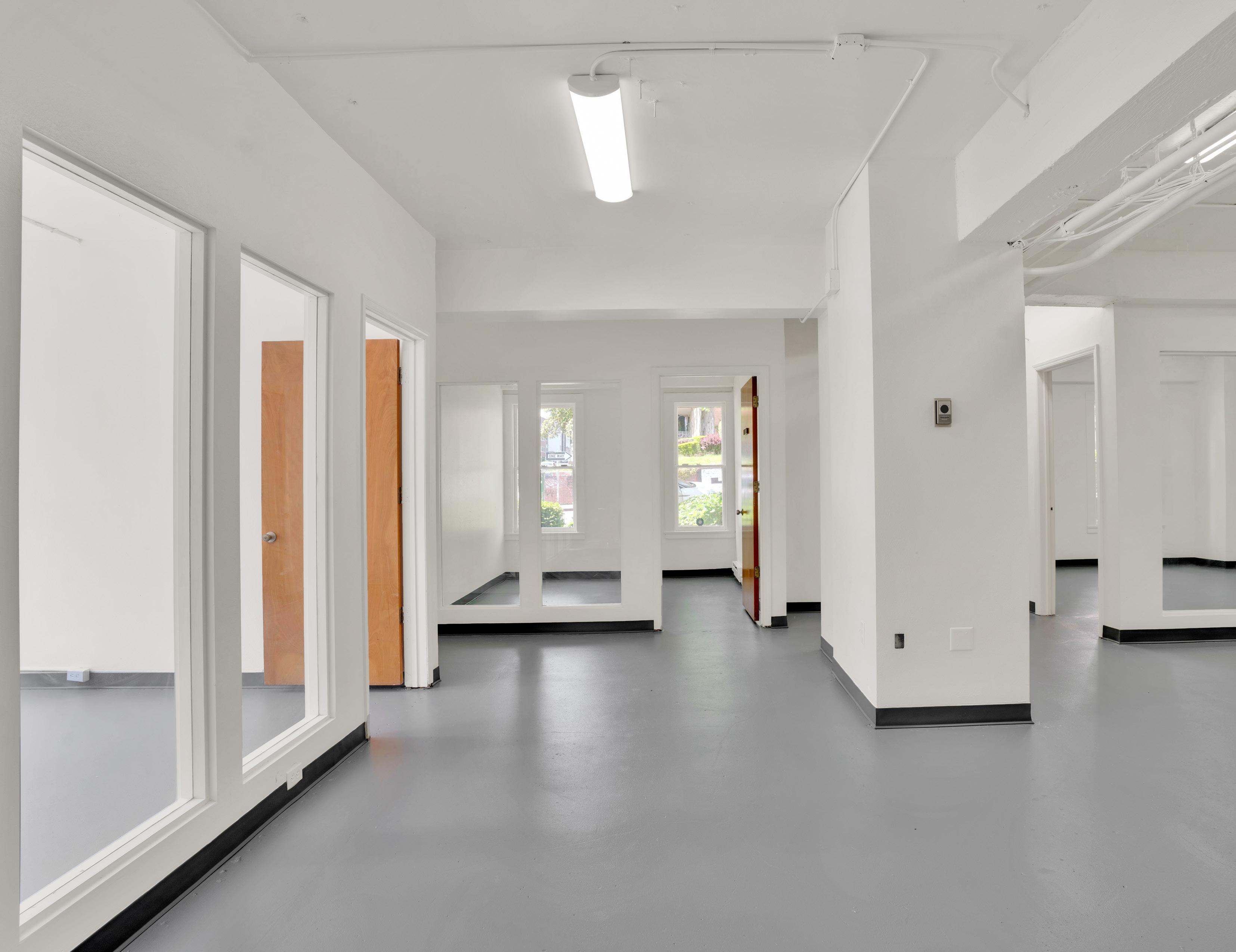 With its own private entrance, this rarely-available, modern ground-level office space is located in a building steeped in Oakland’s rich architectural history. Built in 1924, the Regillus is a stunning Beaux Arts building filled with Old World architectural elements & details. Inside, you’ll be greeted by an abundance of natural light. This recently updated office space is currently configured with a reception area, 4 private offices, a conference room, an open floor layout area, and an ensuite restroom, but can be built to suit.