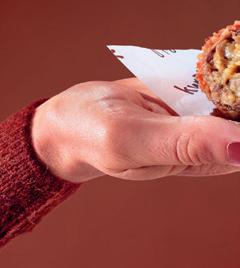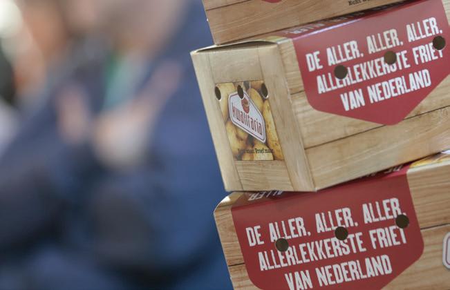 Gebruik een Kwalitaria A9 bakje en geef een servet mee.