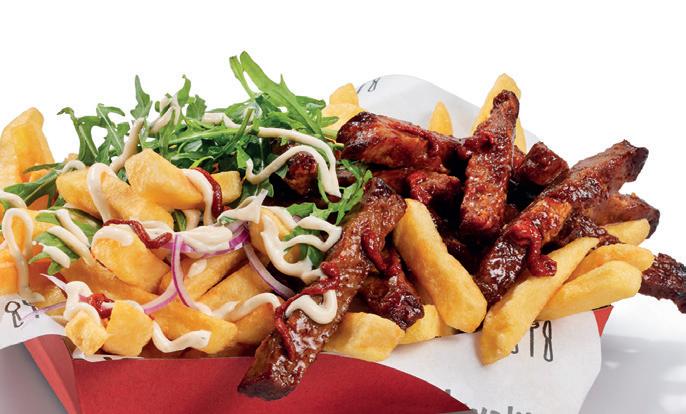 3. Snijd de Mexicano in stukjes en verdeel over de friet.