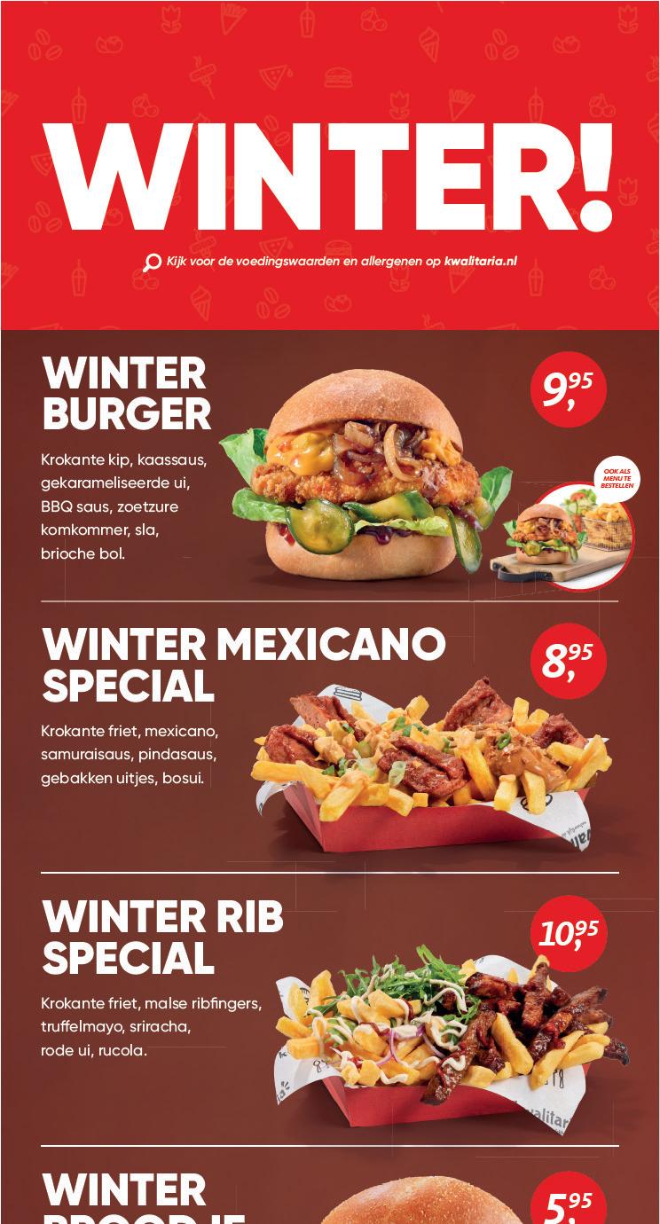 De actie is geldig in de winkel en online voor members met een Kwalitaria account. Zo helpt de actie ook om het aantal accounts te laten groeien. Alle 120 gram burgers doen mee aan de actie, dit keer ook de winter burger, en op jullie verzoek is het voor klanten nu mogelijk om meer dan twee burgermenu’s te bestellen per order.