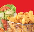 Gebruik een Kwalitaria friet special snackbox met Kwalitaria inlegvel en geef een servet mee.