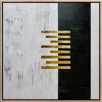 "Simple Gold" to zbiór minimalistycznych kompozycji, inspirowanych geometrią, symetrią i harmonią Złote akcenty, czerń i biel tworzą spójną całość, idealnie wpisując się w różnorodne wnętrza Pracując nad tymi obrazami, posługiwałem się akrylem, olejem, płatkami złota oraz szpachlą gipsową, co pozwoliło mi wyrazić moją wizję w sposób zarówno minimalistyczny, jak i wyrazisty
