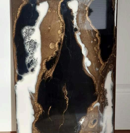 Żywicę można też wylewać na podkłady drewniane, metalowe, których połączenie będzie stanowiło piękną dekorację np : tace, deski kuchenne, stoliki