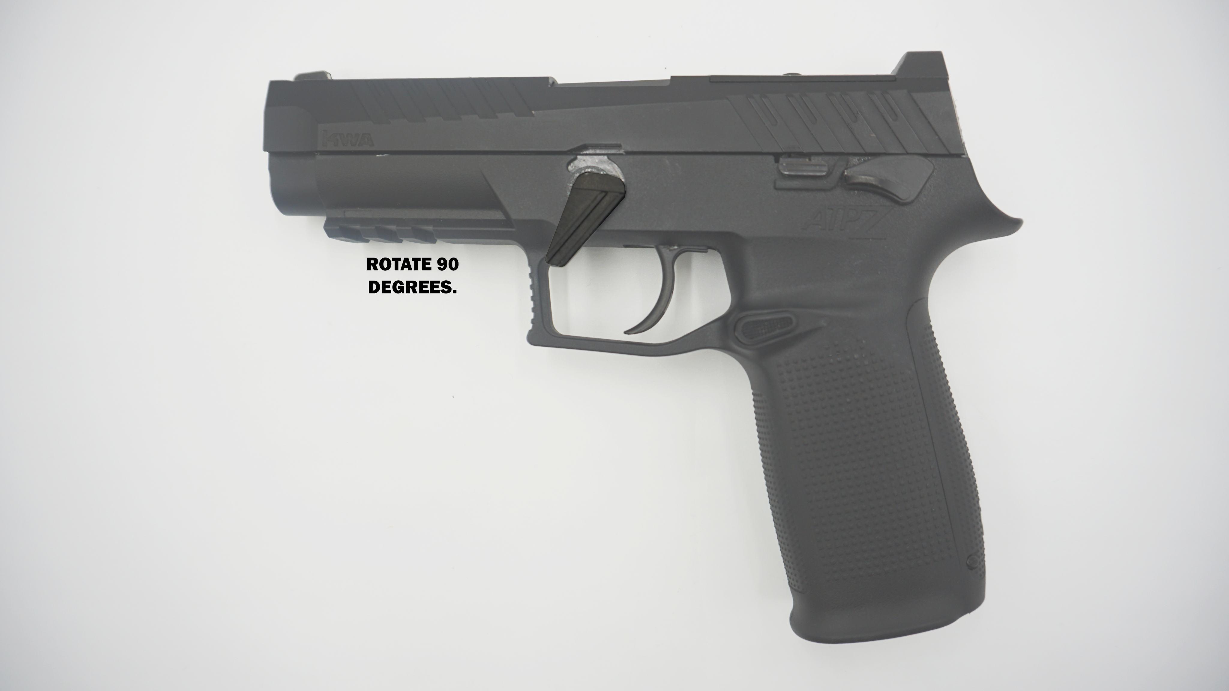 03 Rack the slide backward to reset the trigger into “cock” position.