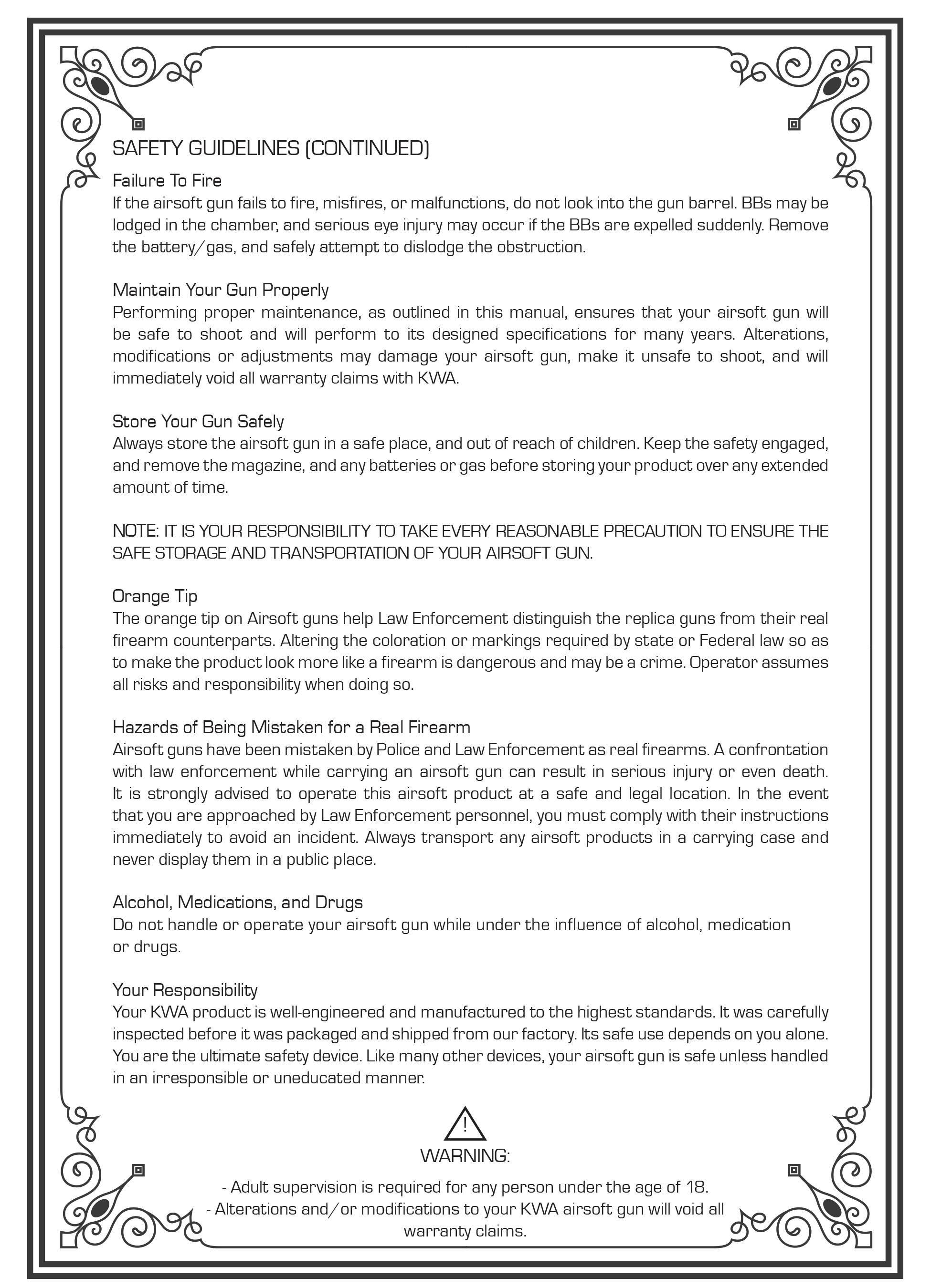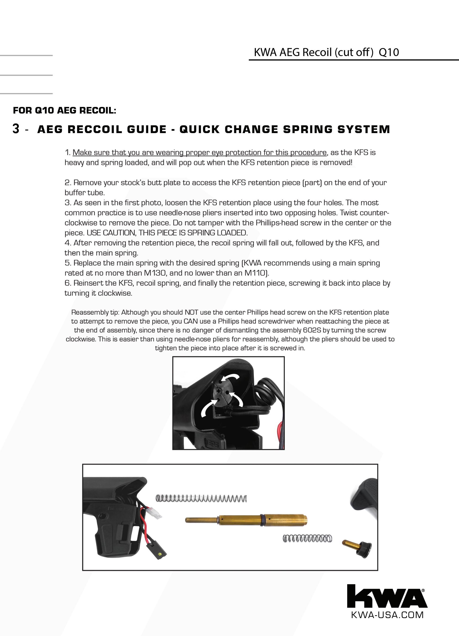 If your motor or battery is excessively hot after use, you may have a pinched wire and it is recommended to contact KWA customer support for additional assistance and RMA. If your guns hop up seems to be ineffective, please note that our guns to have a break in period of around 1000 rounds. If your hop up 1s still ineffective after this period contact KWA support for additional assistance