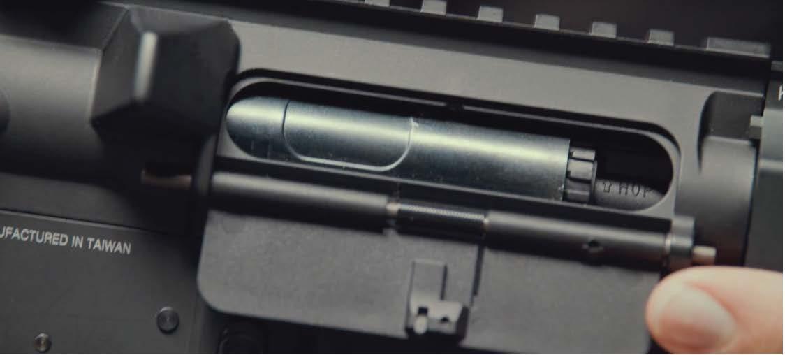To disassemble the gun for maintenance, first ensure no magazine or battery are 1n the gun. Then push out the front body pin ensuring it is not blocking the upper receiver and close the dust cover Next pull the charging handle and simultaneously apply gentle forward pressure to remove your upper receiver - paying careful attention not to kock the moc bolt plate