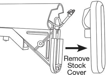 To get your gun up and running, set fire selector to safe mode and keep muzzle pointed away from any person or object. Move the adjustable stock to its shortest, forwardmost position. Press both tabs on the side of the stock, releasing the butt plate. Swing the butt plate upward from the rear as indicated by the black arrow
