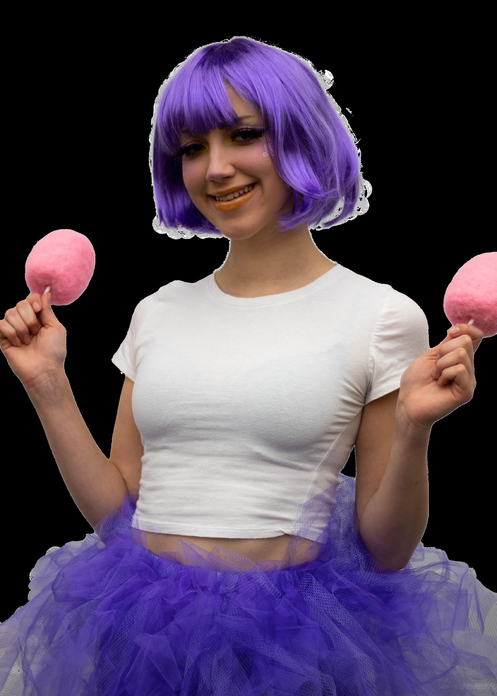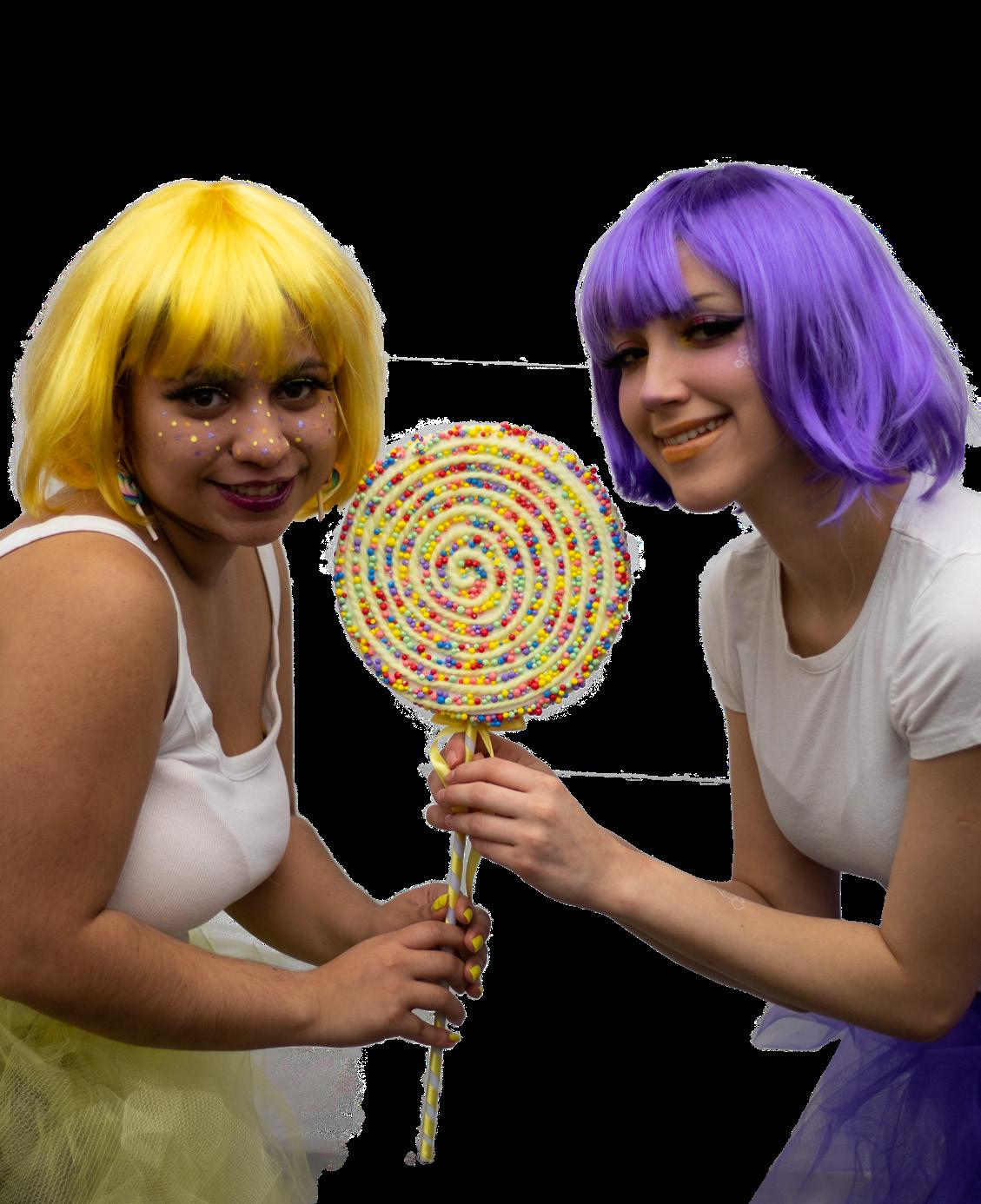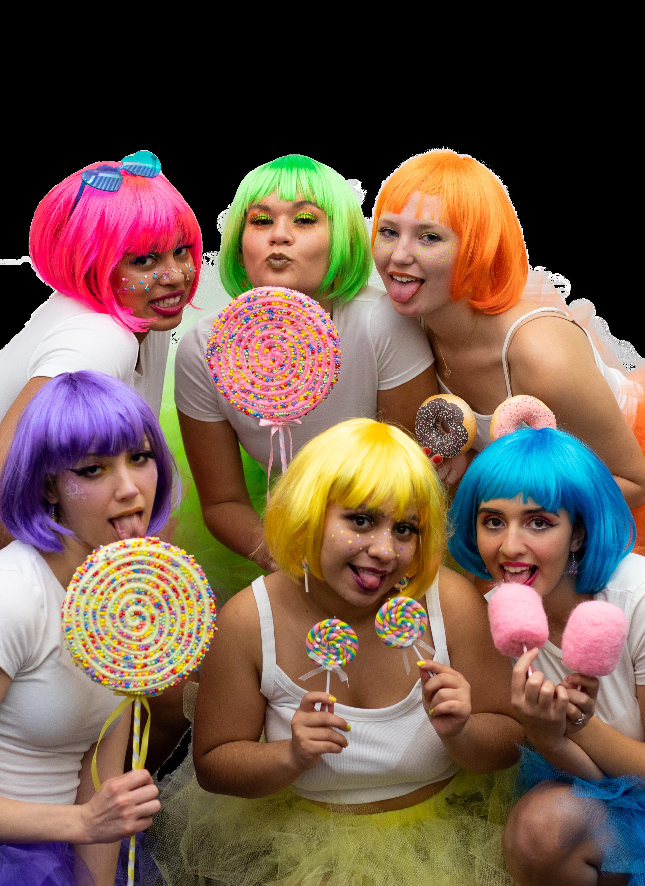 Inspiration for this photoshoot was drawn from Katy Perry’s music video, “California Gurls.” Marifer Recendez planned and organized this endeavor as a means of fun and lightheartedness. Models constructed their own tutus and donned rainbow-colored wigs. Their faces were also decorated with makeup and candy sprinkles. Props consisted of a variety of accessories and sweet treat props.