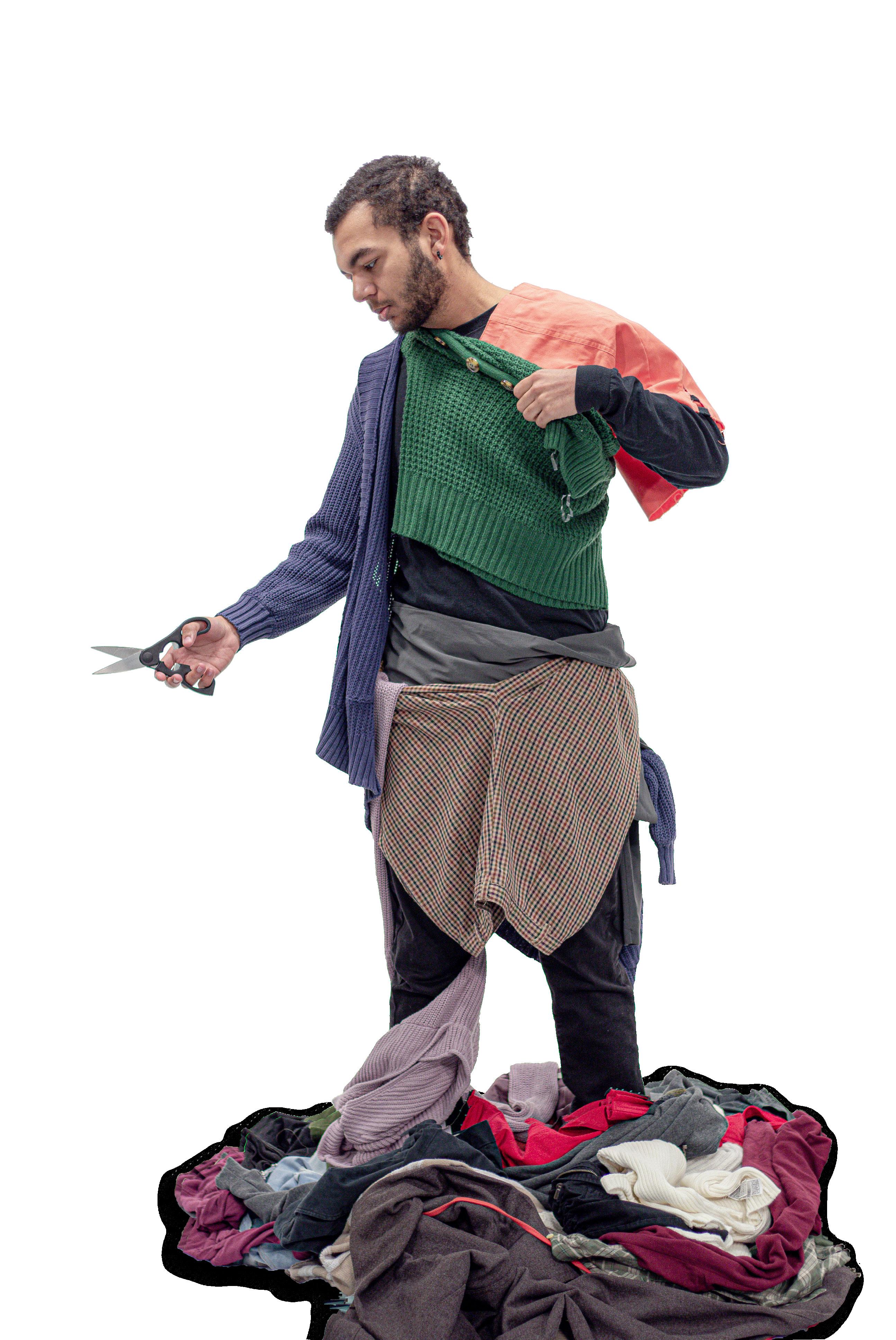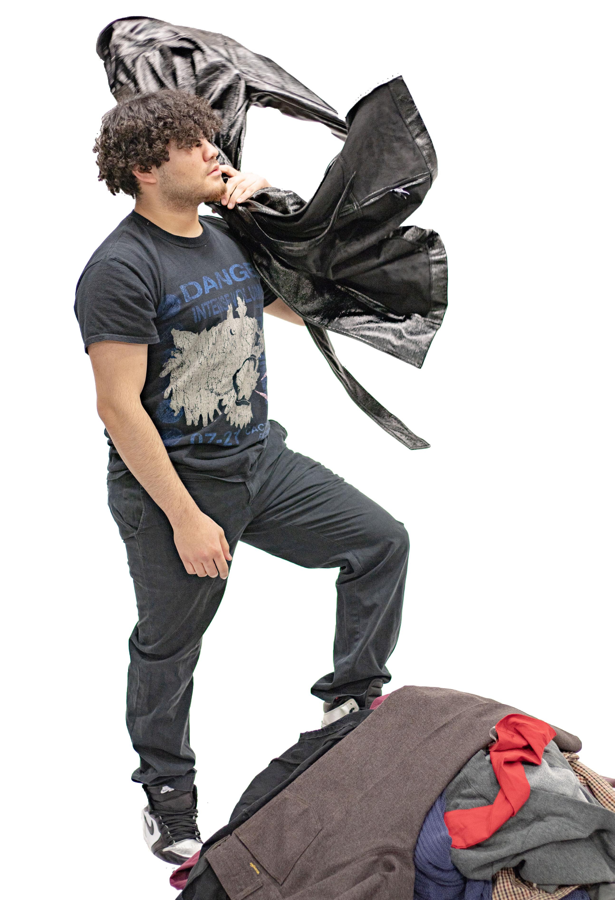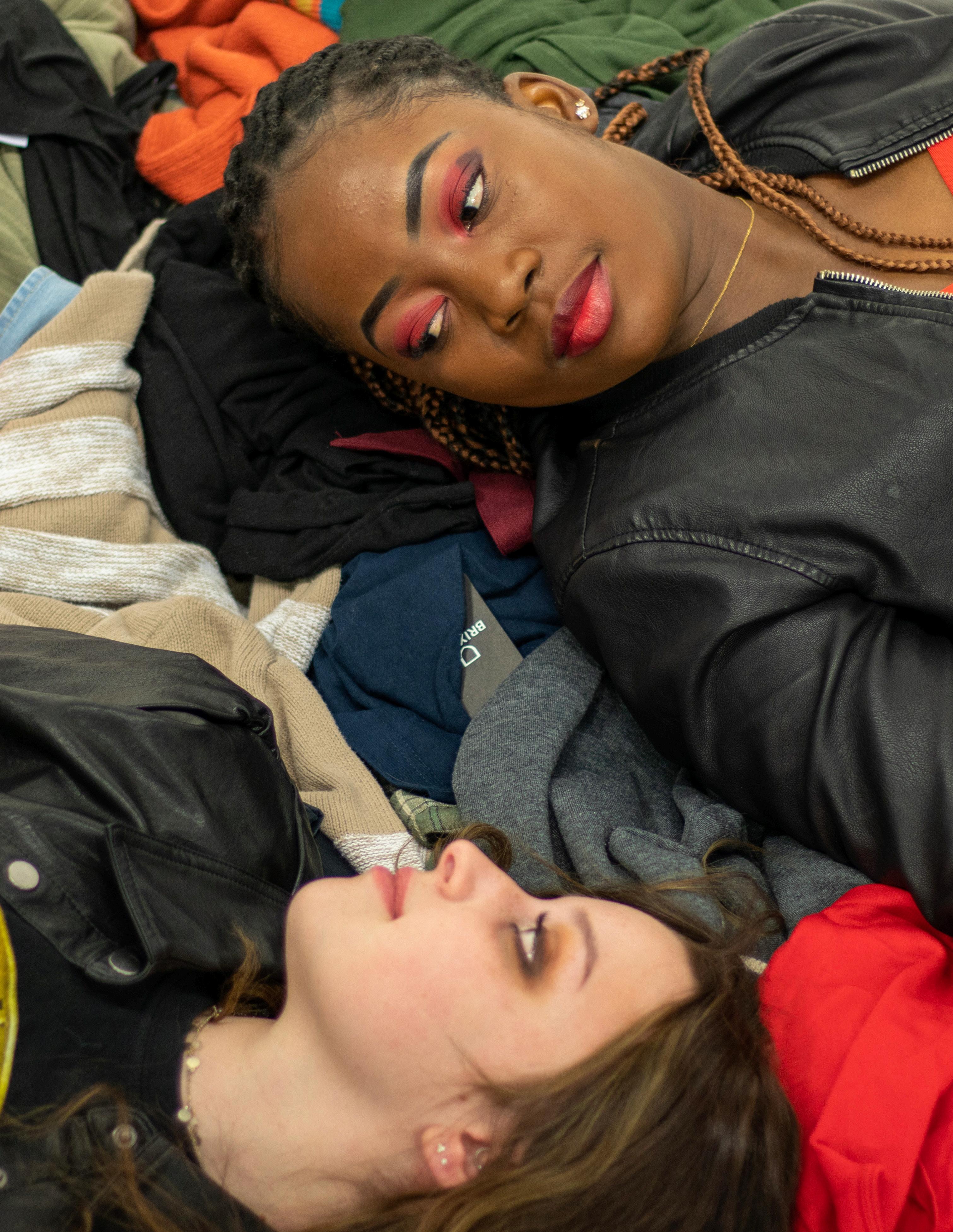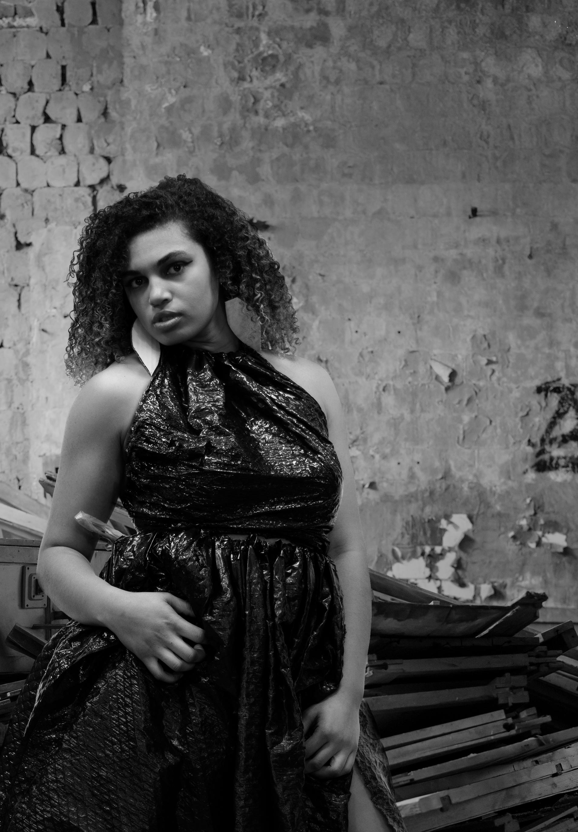 Trash, rubbish, waste...piling up but it is brought to you in the guise of fashion! The environmental impact of the apparel and textiles industry was the focal point of this photoshoot. Stylists and models designed “clothing” from giant black trash bags and also created garbage earrings from cardboard, plastic strips, and metal. The intention was to represent how much cheap fashion is gunking up our world and littering our lives in the name of fashion.