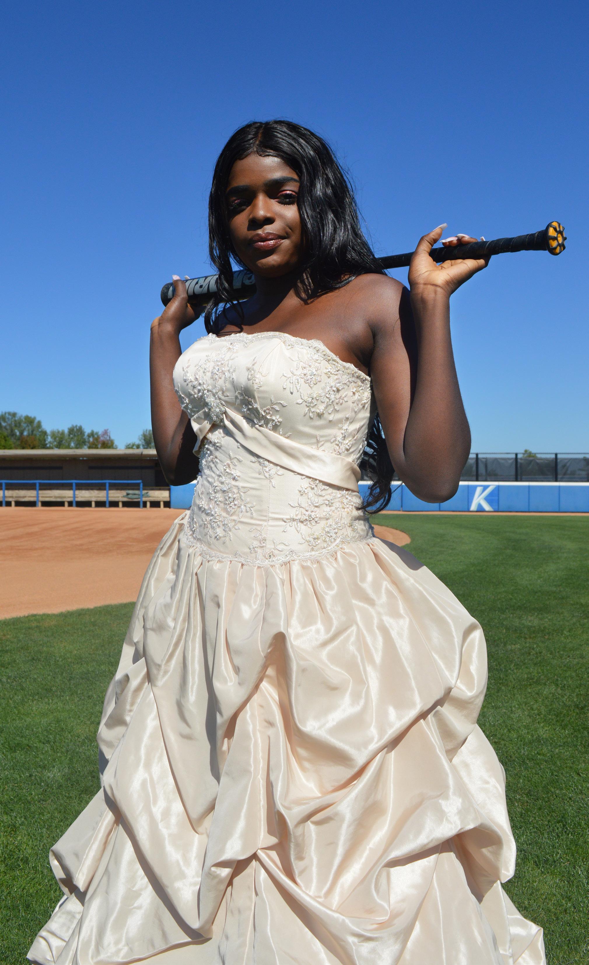 Glitz and glamor fused with sweat and action are what the “Sporty Prom” photoshoot is all about! Sports actions are being performed while the models are posing in dresses, heels, ties, and suits. With a warm color pallet of burgundy, olive green, and mustard yellow there is a feeling of fall that students portrayed in the clothing hues. Balance was the main intention of this shoot and might just have you reaching for your formal wear and cleats.