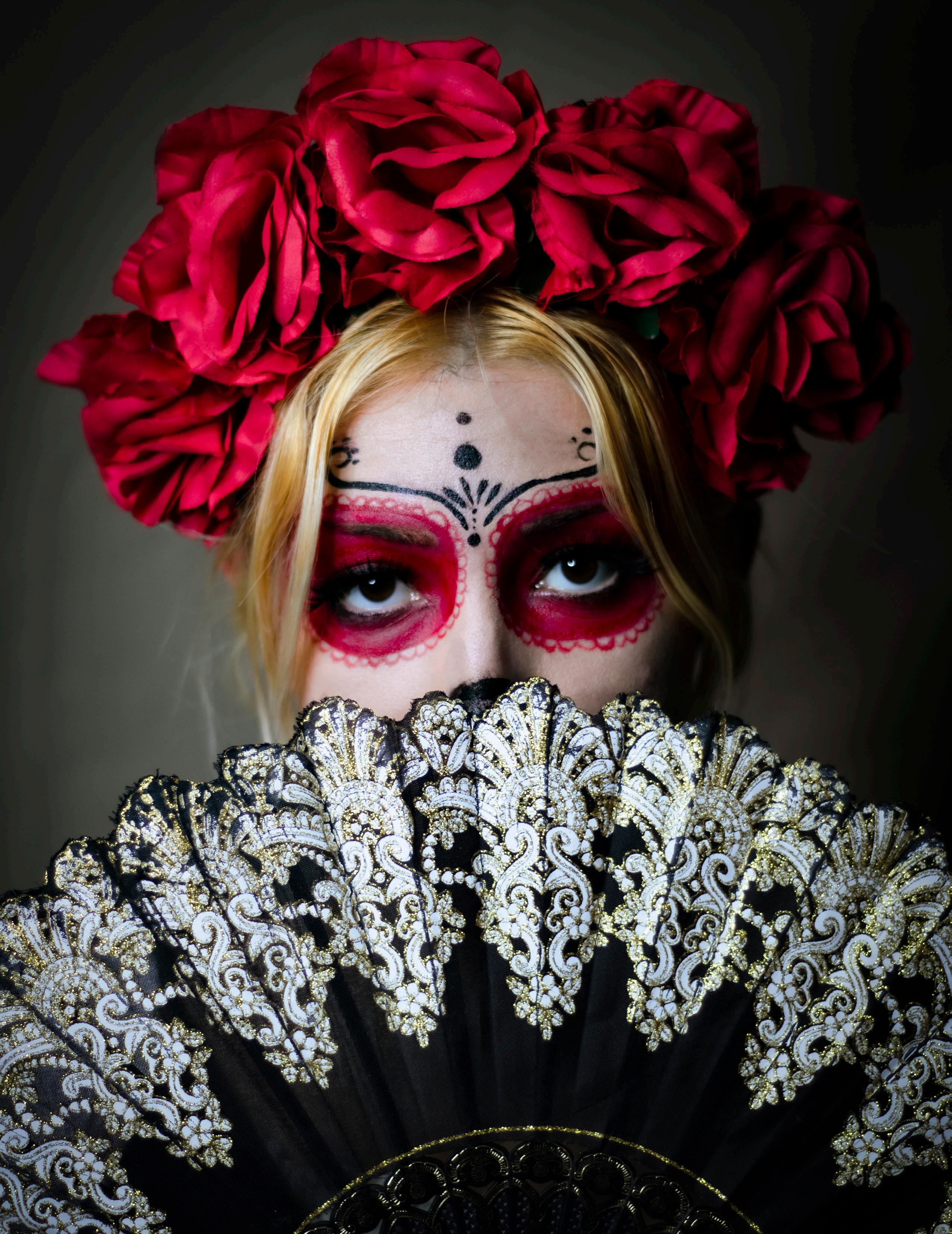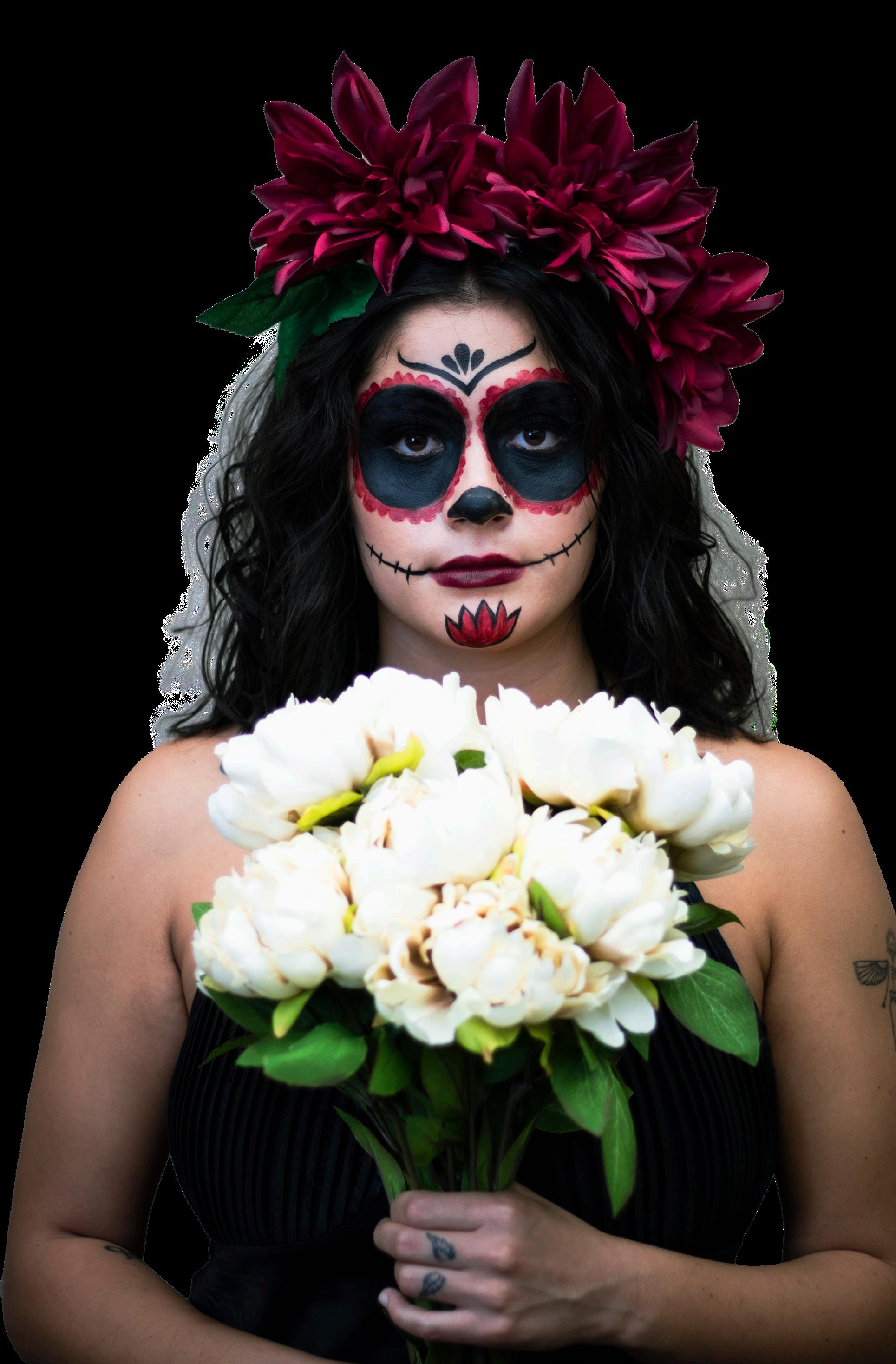 Marifer Recendez planned and organized this photoshoot to demonstrate her Mexican culture. Models of Hispanic heritage were recruited as representationwas highly important for the authenticty and cultural appreciation of this shoot. Stylists and models collaborated to create looks complete with flower crowns and colorful painted faces. Dia de los Muertas, also known as the Day of the Dead, is a traditional Mexican holiday celebrating the lives of those passed and honors their memory. Portrayed as a day of joy, rather than a day of mourning, those celebrating the holiday often paint their faces and wear bright flowers. Prayers are placed on altars to give offerings for deceased family with the intent to encourage visits by the souls of those departed.