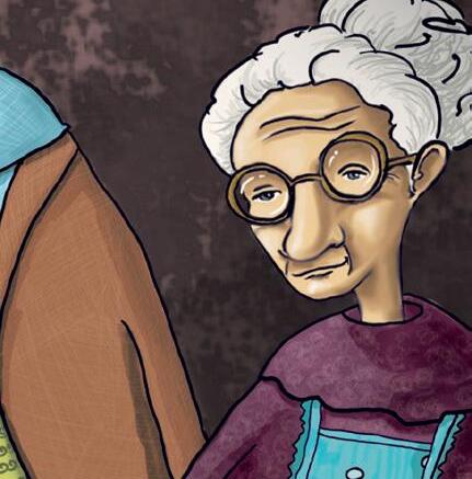 Heeft als stopwoordje: ‘gezellig’. Ze praat wat veel, maar is wel lief. Net als opa lijkt ze niet veel te merken van de spanningen in de familie.