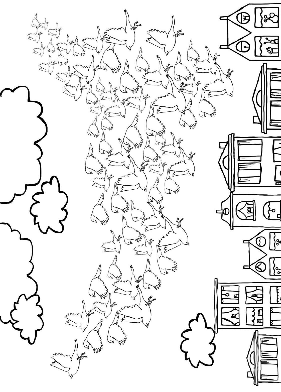 Vertel de kinderen dat ze naar een filmpje gaan kijken (zie hemelenaarde.nl), maar vertel hun nog niet wat ze gaan zien. Vraag na afloop: Wat zag je? Hoe vond je dat? Hoe zouden de vogels dat kunnen, denk je? De antwoorden mogen simpel zijn: Hier vliegen ontelbaar veel vogels samen in een groep. Ze letten op elkaar en kunnen daarom samen zulke mooie figuren maken.