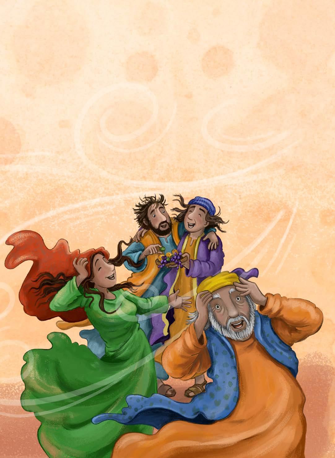 Het is de dag van het oogstfeest. Op het oogstfeest dragen de mensen het koren van het land naar de stad. ‘Kijk,’ zeggen ze dan, ‘er is weer koren dit jaar. We zullen geen honger