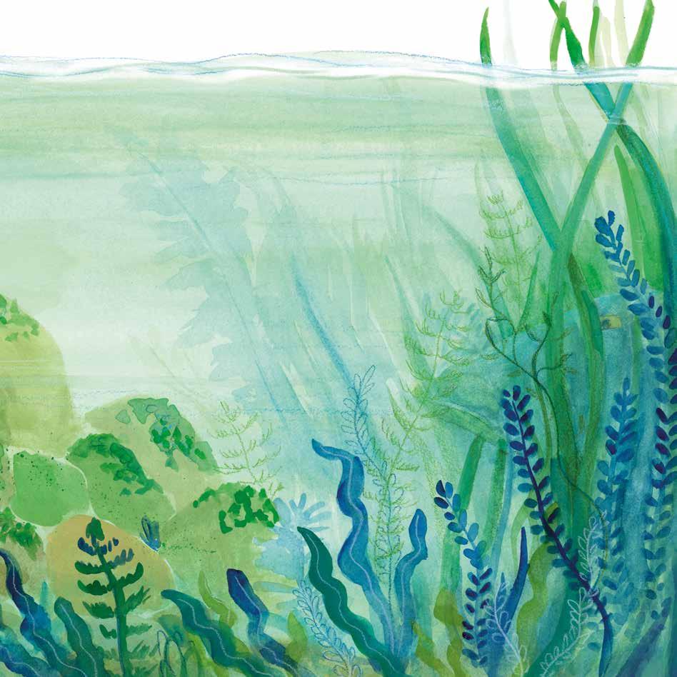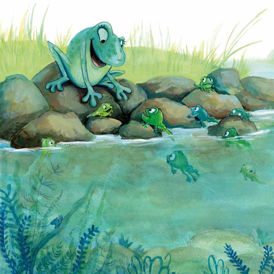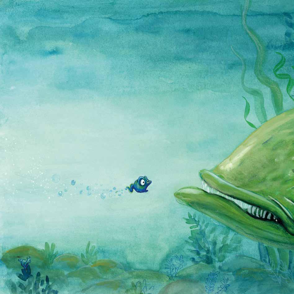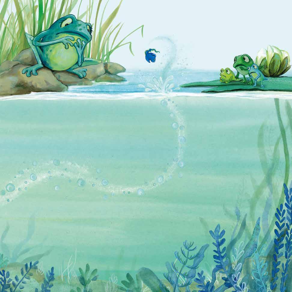 ‘Wat ben je nog klein!’ bubbelt het door het water. Kikkie schrikt.