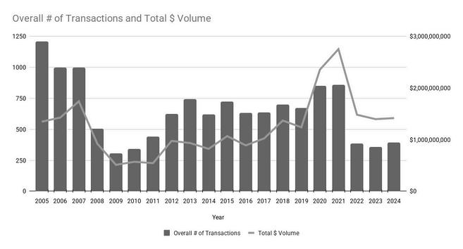 Landtransactionsinthefirstquarterof2025haveremainednotablysparse,continuingatrendthathas persisted over the past three years. The land market peaked in 2021, with 85% more transactions in the first quarter of that year compared to this year. Due to the low number of sales, both average and medianpricingdataarehighlyvolatileandunreliableindicatorsofbroadermarketconditions