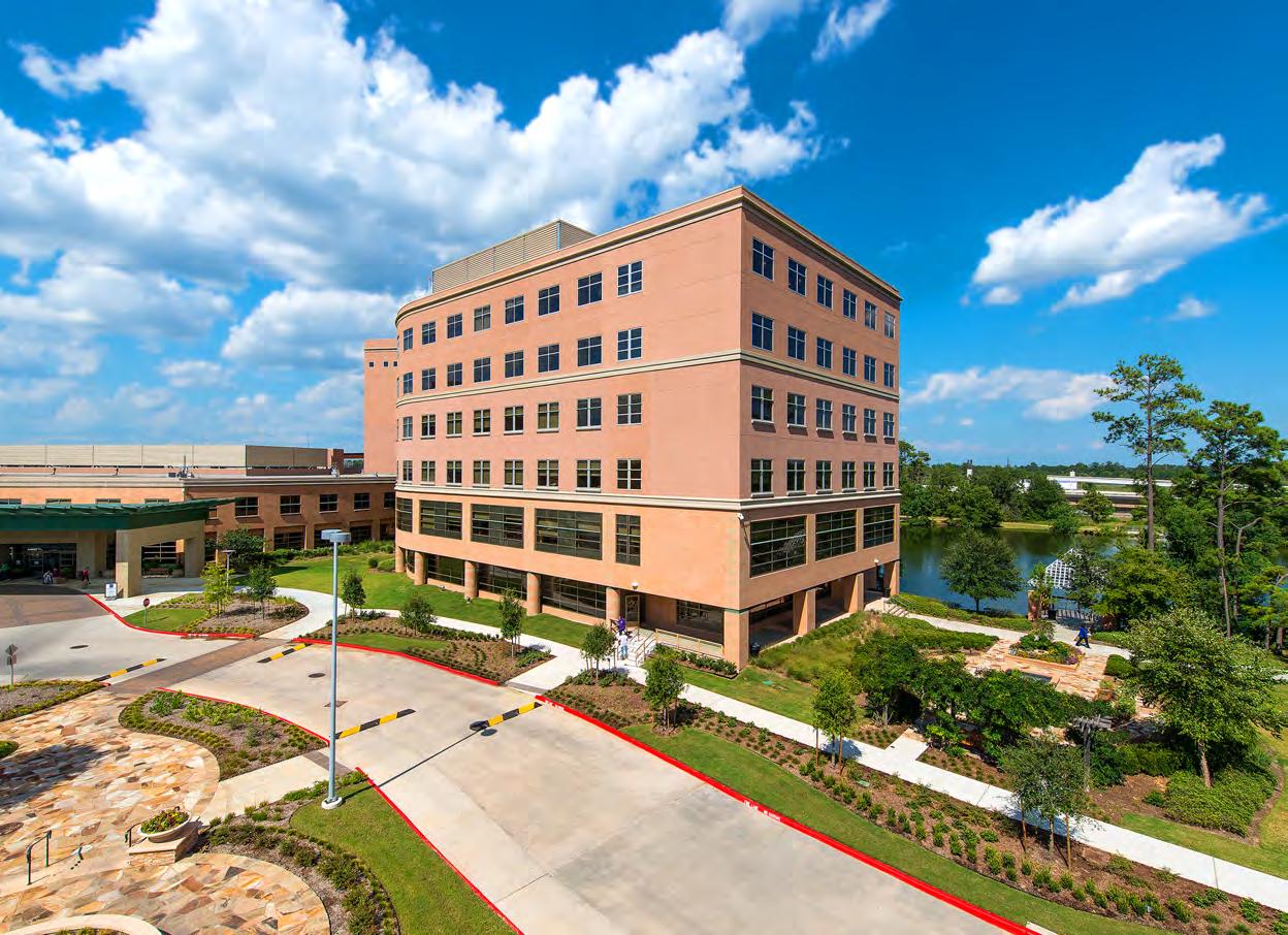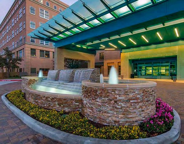 223,000 sf hospital // pedestrian pavers // water features // outdoor seating areas // entry landscape // hardscape // lush landscaping