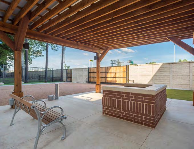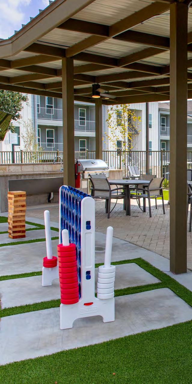 Catering to furry friends, a spacious dog park with convenient wash stations is available. Additionally, Texas-sized BBQ pits encourage camaraderie in the outdoor gathering spaces, fostering a sense of community among residents.
