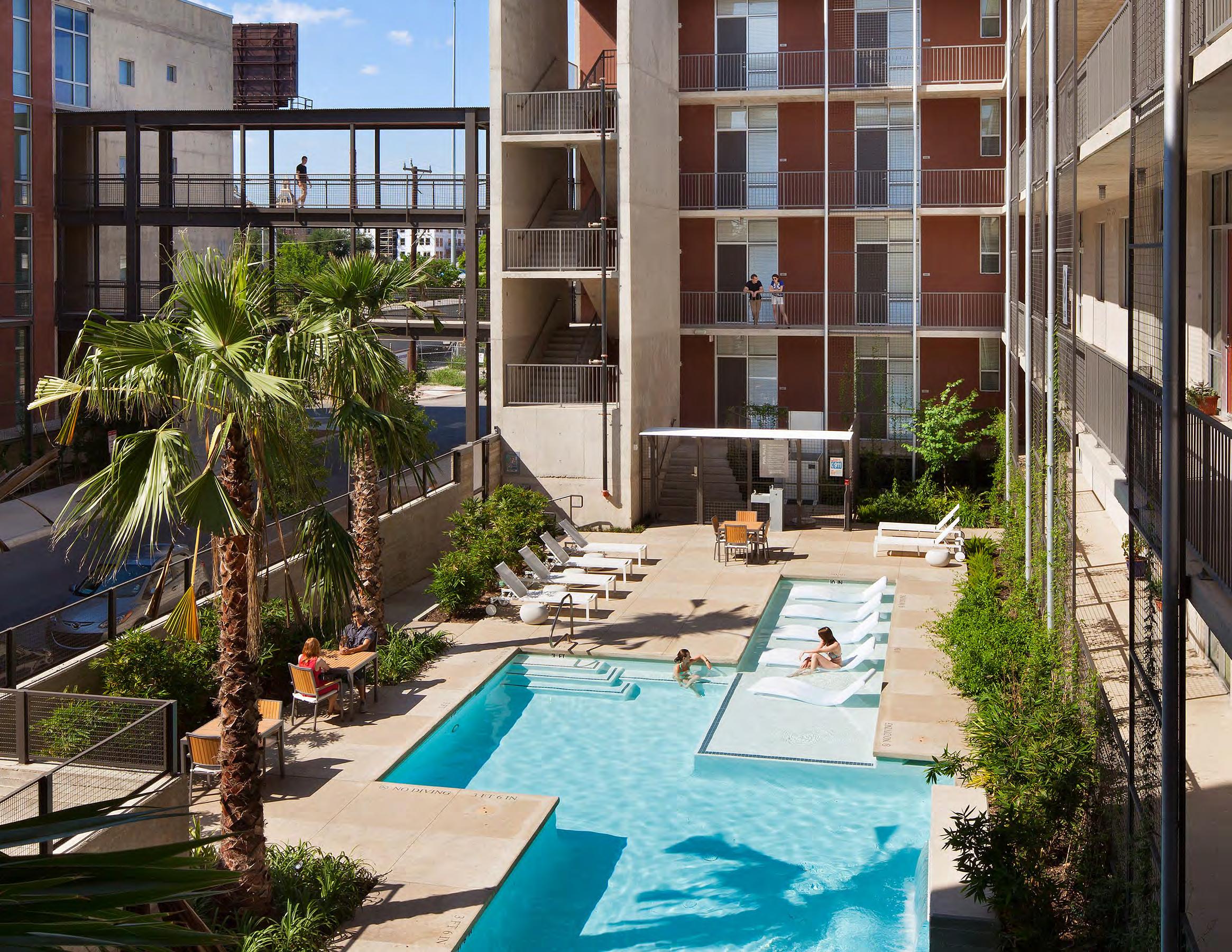 Beyond its impressive amenities, Camden Rainey Street showcases KW’s thoughtful design of the streetscape, with pedestrian-friendly pathways, inviting lighting, and sustainable irrigation systems. This development exemplifies contemporary urban living, combining architectural excellence with a prime location to provide a unique and vibrant residential experience in the heart of Austin.