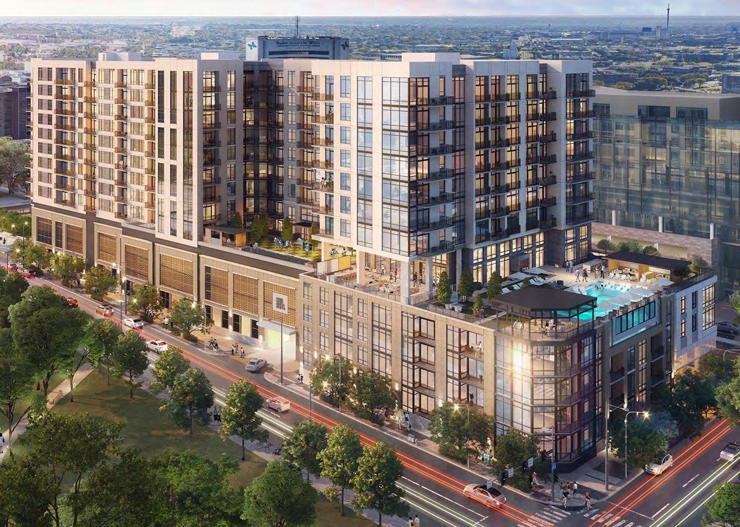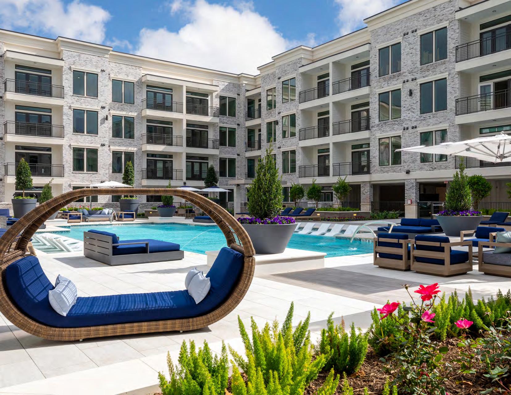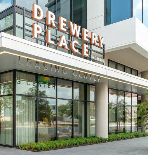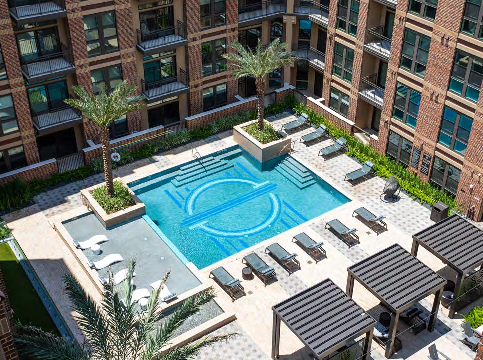 Centrally located in Midtown, the Drewery Place stands 27-stories tall and is a mixed-use development with 380 multifamily units alongside ground floor retail spaces. Residents can indulge in podium-level amenities, featuring a lavish resort-style pool deck complete with a swim-up bar and tanning ledges, as well as an outdoor kitchen and dog park.